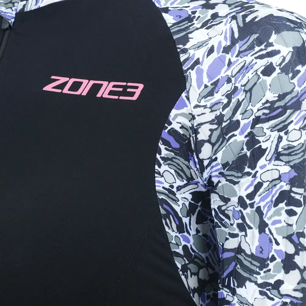 Het Zone3 Lava trisuit is al jaren populair en nu met verbeterde pasvorm en nieuwe designs. Dit suit is ontwikkeld voor lange afstanden triatlons door gebruik te maken van kwaliteit hoogwaardige Europese stoffen. De stoffen maken gebruik van ColdBlack technologie die de lichaamstemperatuur helpen reguleren en zon weerkaatsen in plaats van opnemen. De stof heeft een zeer hoog ademend vermogen en biedt veel bewegingsvrijheid. Door een waterafstotende coating, snijdt je sneller door het water heen. De gebruikte zeem komt van Italiaanse experts en is elastisch. Daardoor biedt deze niet alleen comfort tijdens het fietsen, maar voel je hem niet zitten tijdens het hardlopen. Dankzij een hoog ademend en sneldrogend vermogen is de zeem na het zwemmen binnen mum van tijd weer helemaal droog. De grippers op het einde van de broekspijpen zijn verweven met de broek in plaats van op de broek genaaid. Hierdoor blijft alles perfect op zijn plek zitten, zonder dat ze de bewegingsvrijheid beperken. Het bovengedeelte van het trisuit is aerodynamisch gevormd en zorgt ervoor dat de wind er sneller overheen vloeit. Er is op de achterzijde ruimte aangebracht voor het meenemen van twee energiegels. Deze zakjes hebben een aerodynamische hoes, waardoor ze geen extra weerstand creëren.