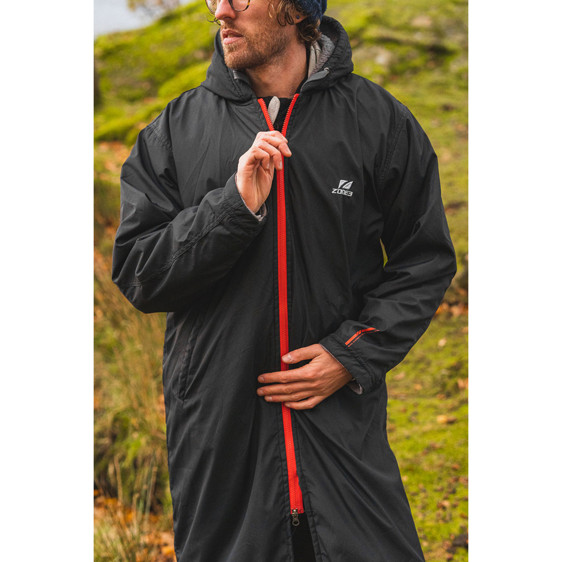 Deze Polar Fleece Parka Robe jas is de ideale jas voor alle momenten dat je na je activiteit weer moet opwarmen. Draag het na je buitenzwemtraining, of na een koude regenachtige fiets- op looptraining waarbij je snel op wilt warmen. Het jack biedt warmte en bescherming tegen de weersinvloeden. Om je benen ook weer op te warmen is de 3/4 lengte perfect. De jas is aan de binnenkant gemaakt van Polar Fleece-stof van Zone 3, deze warmteregulerende stof absorbeert zweet en voert het af terwijl het je warm houdt. De buitenste laag is wind- en waterdicht. Een groot binnenvak biedt plaats aan accessoires of voeding. Daarnaast is een kleiner vak met rits voor waardevolle spullen. De lange ritssluiting gaat niet helemaal tot onderaan, waardoor open- en dichtritsen eenvoudig blijft. Twee fleecezakken aan de voorkant zijn ontworpen om je handen op te warmen. De grote capuchon met koordbevestigingen houden je hoofd warm.