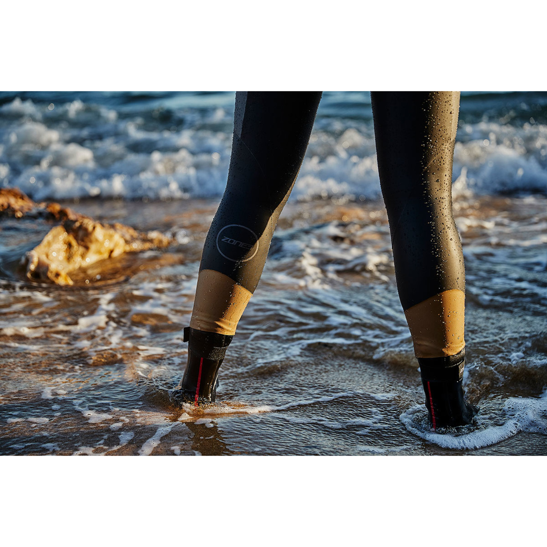 Dit Thermal Aspire Wetsuit van Zone3 is voorzien van Heat-Tech Fleece voering en is ideaal voor de diehard zwemmers die langer in open water zwemmen. De constructie is ontwikkeld om de lichaamswarmte rond de belangrijkste spieren en organen vast te houden. Deze Heat-Tech uitvoering is gebaseerd om de bekroonde Aspire serie van Zone3, maar dan aangepast en specifiek gemaakt voor open water zwemmen in de vroege lente en herfst of misschien wel de winter. Het is vervaardigd met 100% echt Yamamoto neopreen, variërend van 2 tot 5 mm dik. Door de Premium SCS #39 Yamamoto stoffen en Heat-Tech Fleece voering wordt je lichaamstemperatuur optimaal behouden. Door de aqua dynamic 'SCS' Nano-coating vermindert de weerstand van 0,4 tot slechts 0,021 terwijl de Pro Speed Cuffs op de armen en benen helpen om het pak snel uit te trekken waardoor je snel kunt wisselen (of douchen). De variërende diktes van het neopreen komen tegemoet aan behoud van de warmte, maar ook aan de flexibiliteit waar dat het meest nodig is. De armen en schouders zijn 2 mm dik, terwijl de borst-, been- en lichaamspanelen 4 en 5 mm dik zijn. De materialen zijn afgeleid van kalksteen met een 23% hogere gesloten celstructuur dan olie, waardoor het drijfvermogen toeneemt en het wetsuit milieuvriendelijker ontwikkeld is.
