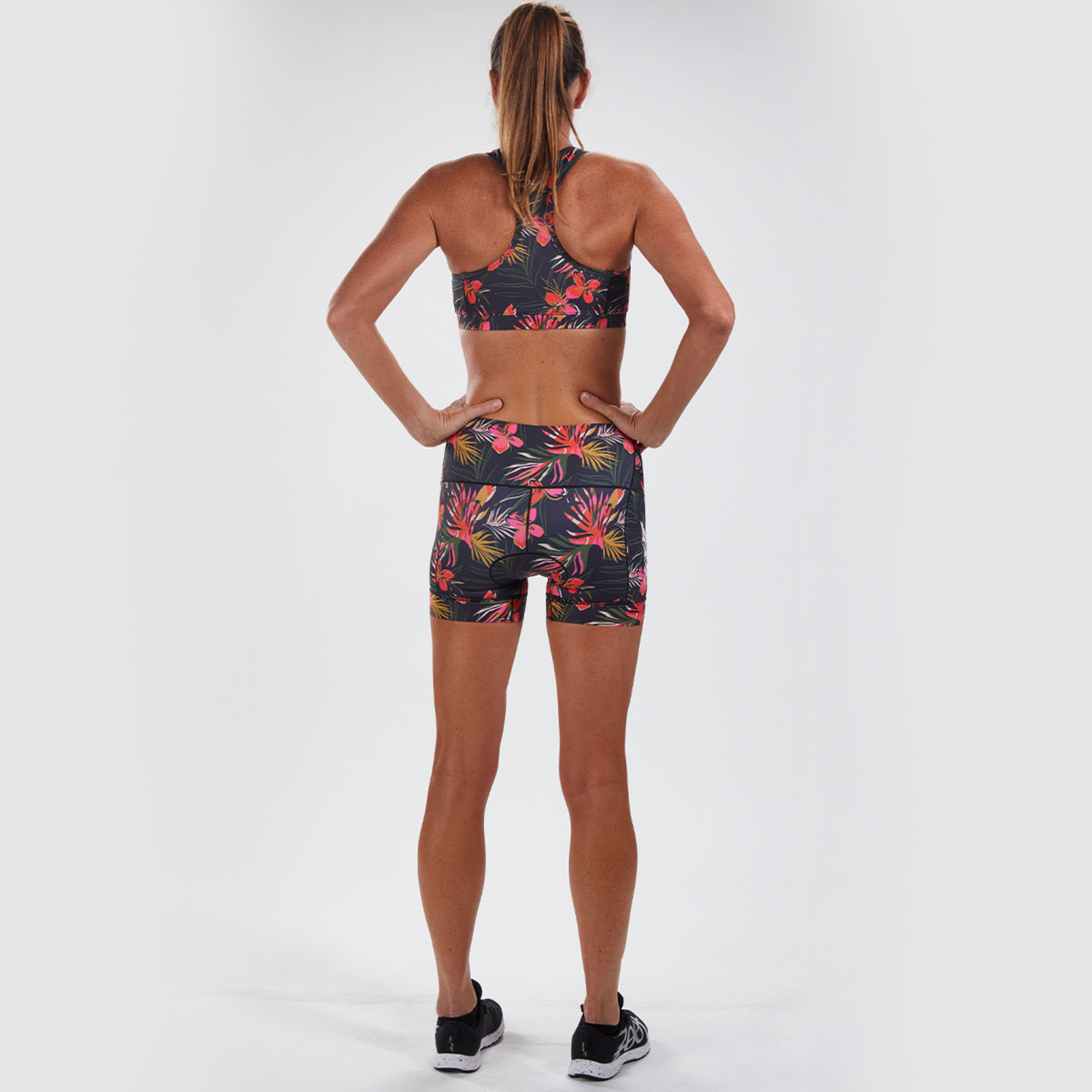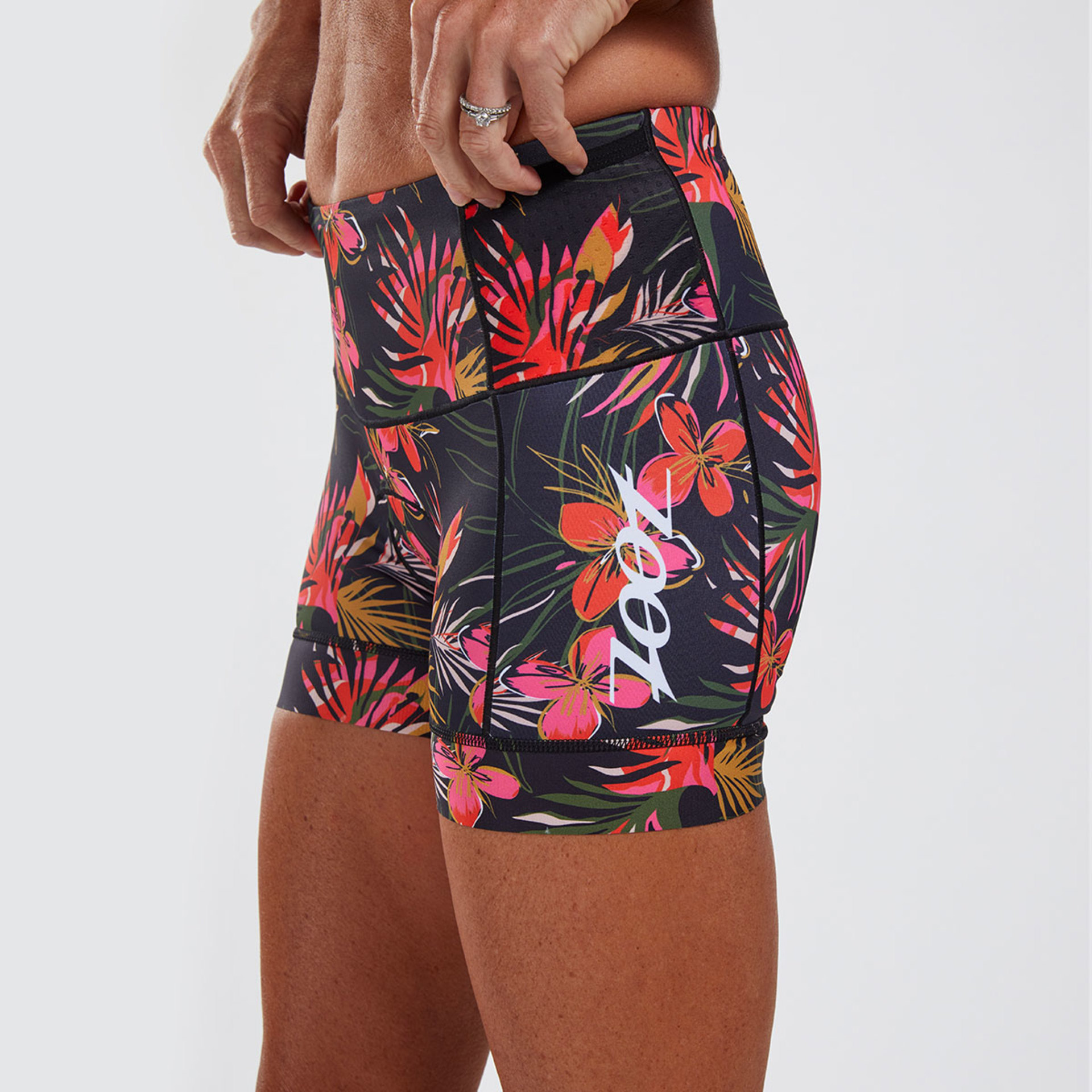 Deze Zoot LTD Tri 4" Triathlon Broek combineert functie en mode uitstekend met elkaar. De opvallende print zorgt ervoor dat je al van verre bent te herkennen. Deze Waikoloa uitvoering is geïnspireerd op het legendarische slopende fietsparcours van het WK in Kona, Hawaii, waar de plaats Waikoloa ligt. De gebruikte PRO CARBON TRI zeem zorgt voor de nodige comfort. Deze is speciaal ontworpen om comfort te bieden in de aerodynamische houding op een tijdritfiets. De zeem gaat daarnaast niet in de weg zitten tijdens het zwemmen en hardlopen. De broek is ontworpen met een brede, flatterende platte tailleband met gemakkelijk toegankelijke zijzakken voor een gel of sportreepje.