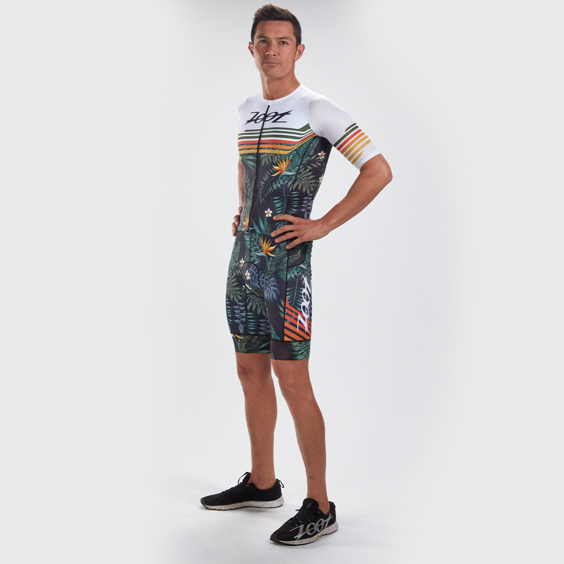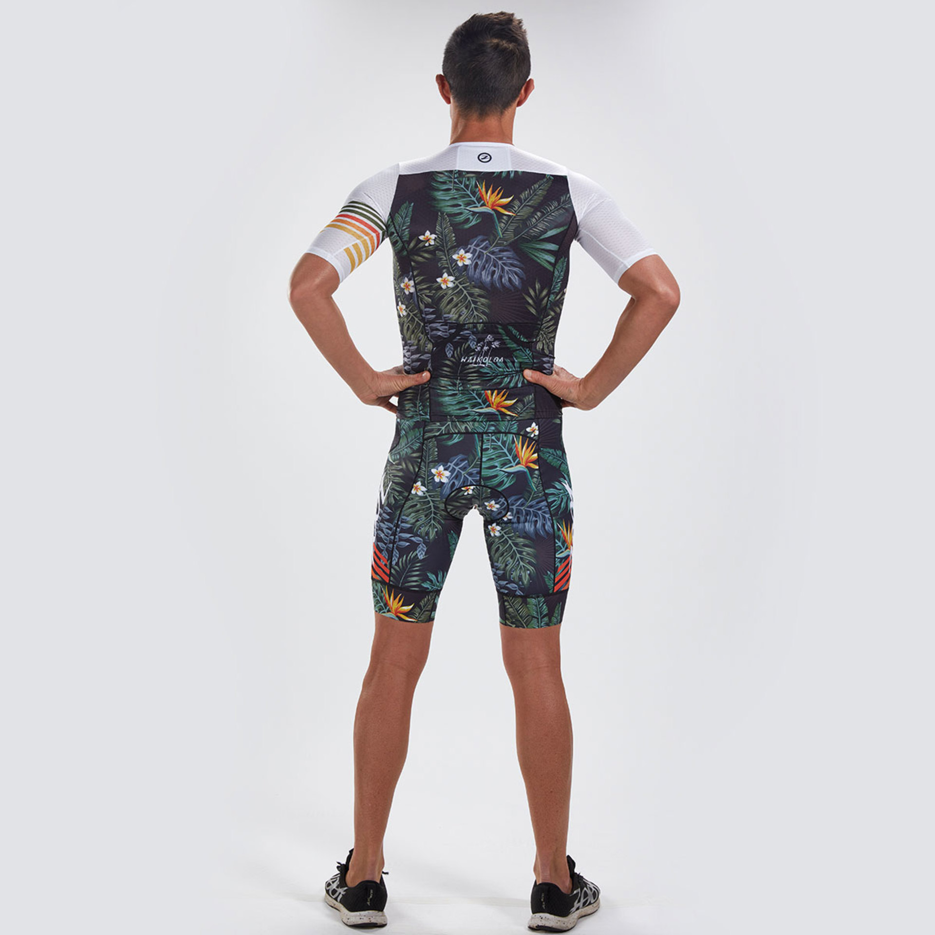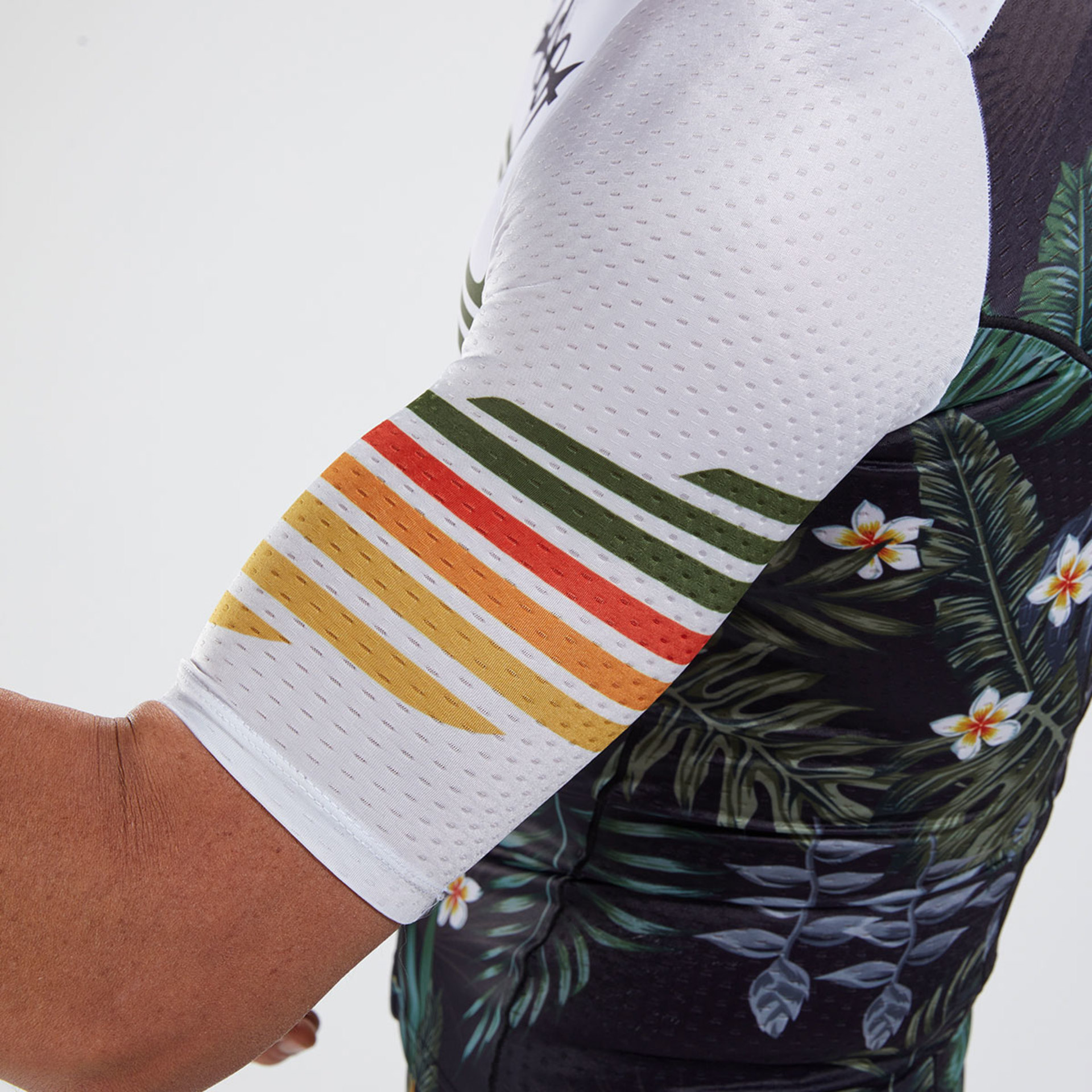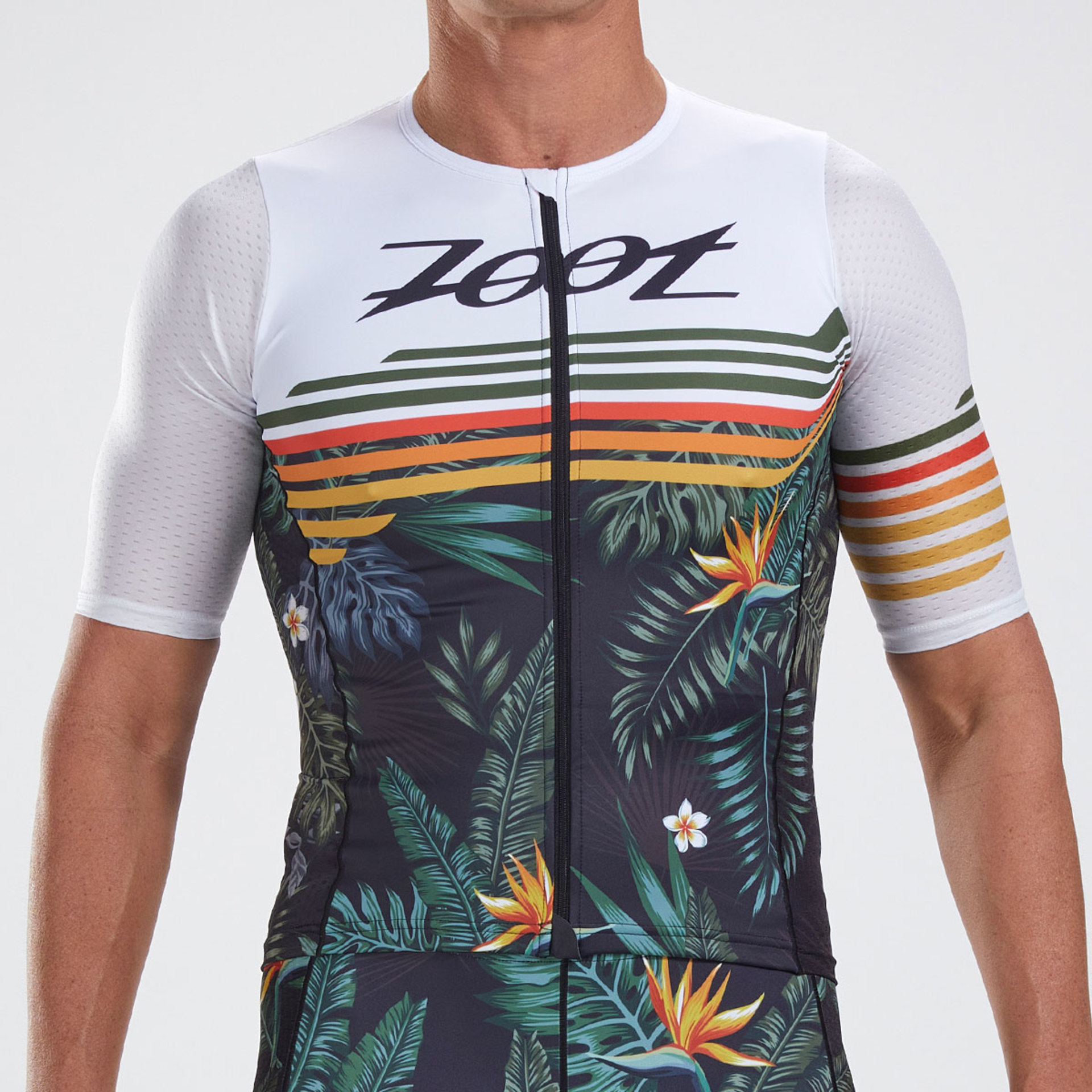 Dit LTD Tri Aero Triathlonshirt van Zoot combineert stijl en functie met elkaar. Deze Waikoloa uitvoering is geïnspireerd op het legendarische slopende fietsparcours van het WK in Kona, Hawaii, waar de plaats Waikoloa ligt. Geniet van volledige bewegingsvrijheid dankzij de strakke pasvorm en stretchende stof. In achterzakken neem je jouw essentials mee, bijvoorbeeld je sportvoeding. De rits aan de voorzijde is makkelijk te bedienen en heeft een bescherming voor het lichaam. High Speed Light geribbelde stof is op de armen aangebracht voor optimale aerodynamica. Deze triatlontop is geweldig voor training en racen en geeft je de ondersteuning en stijl die je zoekt. Race in stijl en comfort!